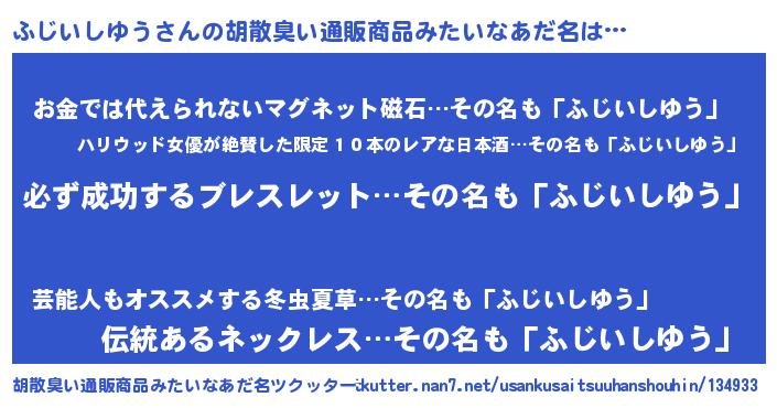 | 肩書あだ名 | 『ふじいしゆう社長』『ふじいしゆう教授』 |