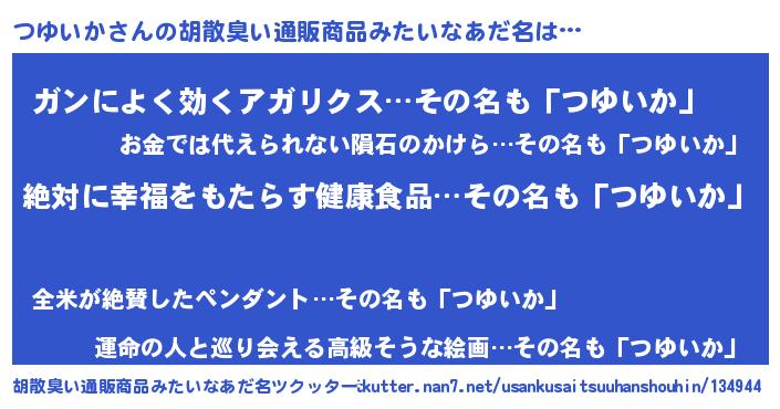 | ヘコむあだ名 | 『つゆいか(爆)』『牛乳』『つゆお』 |