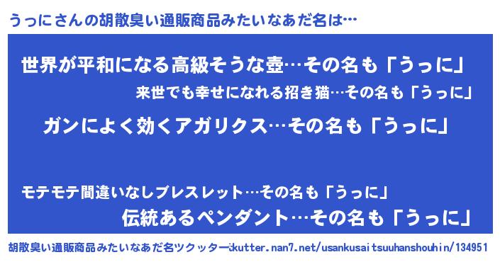 | ポケモン風あだ名 | 『ウッセウス』『ウッニダネ』 |