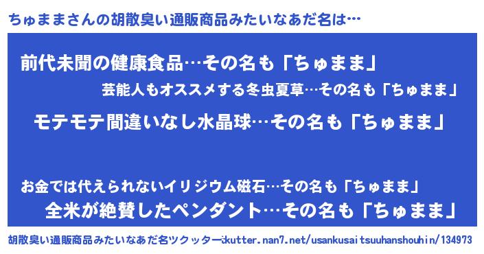 | ヘコむあだ名 | 『ちゅにゅー』『ちゅまま(爆)』 |