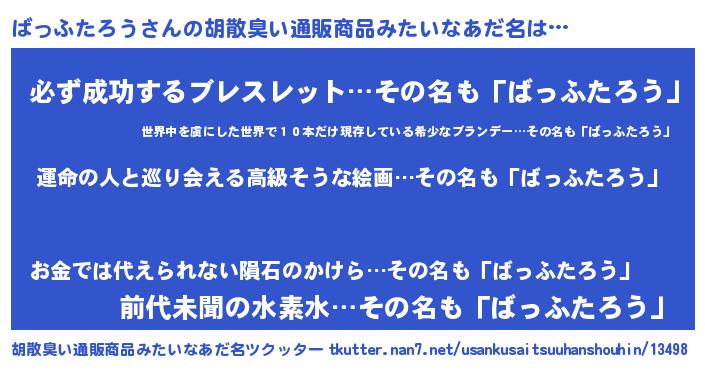 | 意味不明あだ名 | 『ばっふたろうフォーエバー』 |