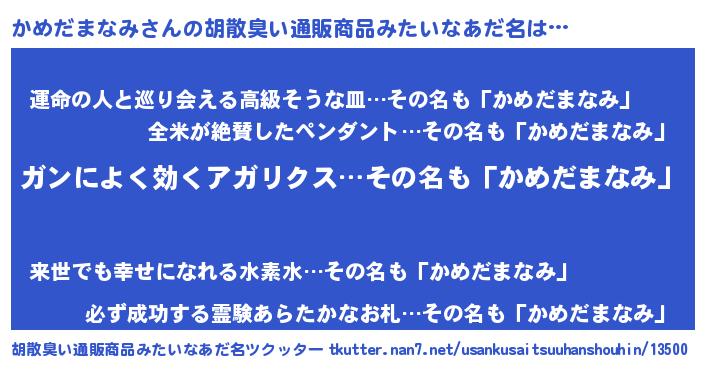 | 意味不明あだ名 | 『自称かめだまなみ』 |