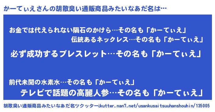 | 男性向けラノベタイトル風あだ名 | 『かーてぃえの憂鬱』 |