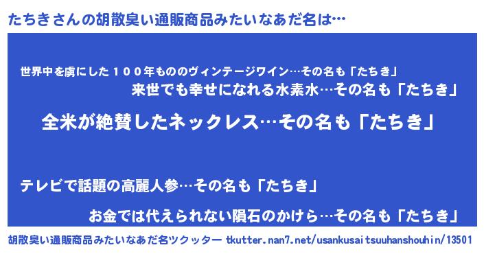 | ヘコむあだ名 | 『たち太郎』『たちき(笑)』 |
