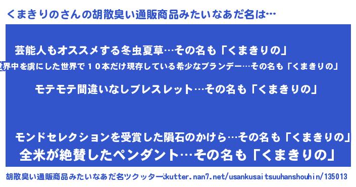 | 意味不明あだ名 | 『ペロリンくまきりの』『自称くまきりの』 |