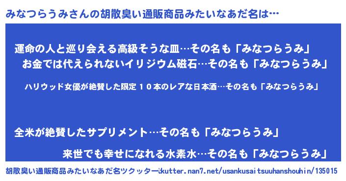 | 意味不明あだ名 | 『住所不定無職みなつらうみ(40歳)』 |