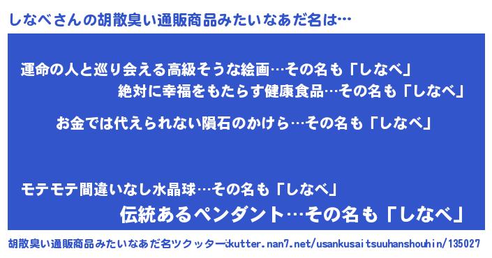 | ヘコむあだ名 | 『豆乳』『しなを』『しなべ(震え声)』 |
