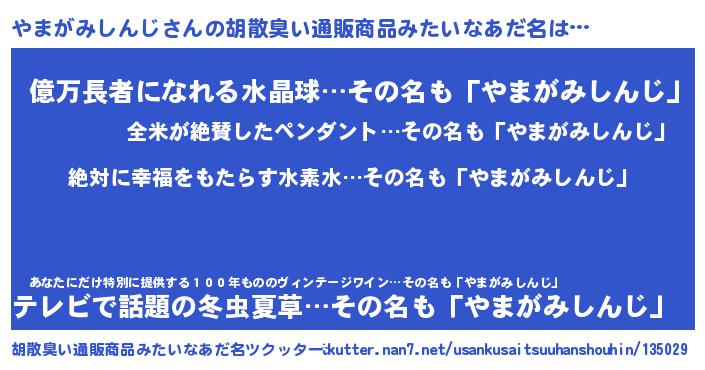 | 男性向けラノベタイトル風あだ名 | 『やまがみしんじという概念が存在しない退屈な世界 』 |