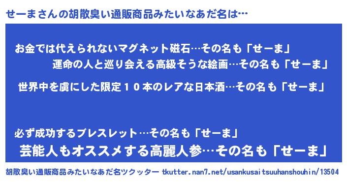 | ヒーロー風カッコイイあだ名 | 『仮面セーダー』『愛の使者せーま』 |