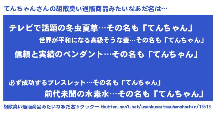 | ヘコむあだ名 | 『てんぷりん』『てんちゃん(遠い目)』 |