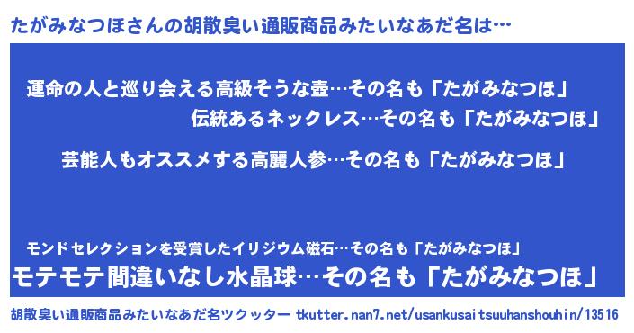 | 意味不明あだ名 | 『自称たがみなつほ』 |