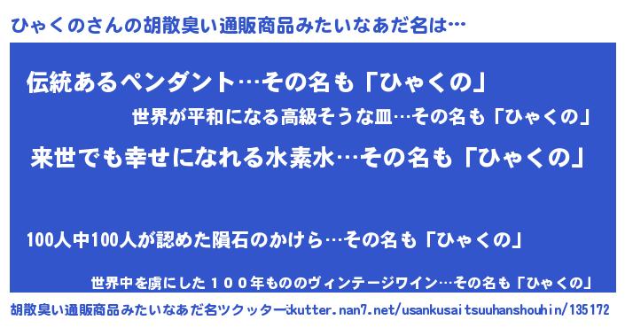 | ヘコむあだ名 | 『ひゃくの(震え声)』『ひゃっ子』 |