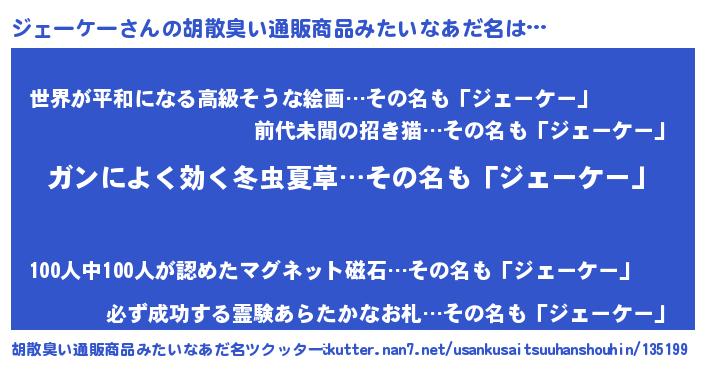 | 欧米人風あだ名 | 『アンジェラ・ジェーケー』 |