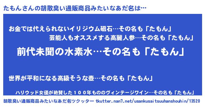 | ヘコむあだ名 | 『たもん(震え声)』『なまこ酢』 |