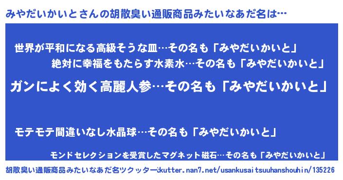 | 意味不明あだ名 | 『自称みやだいかいと』 |