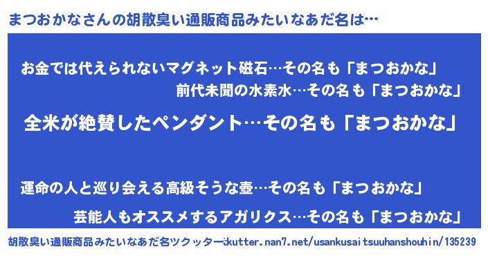 | 意味不明あだ名 | 『とにかく怪しいまつおかな』 |