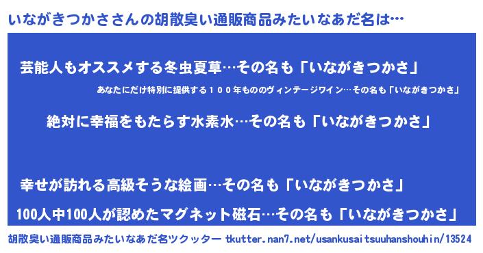 | ヘコむあだ名 | 『いながきつかさ(遠い目)』『酢こんぶ』 |
