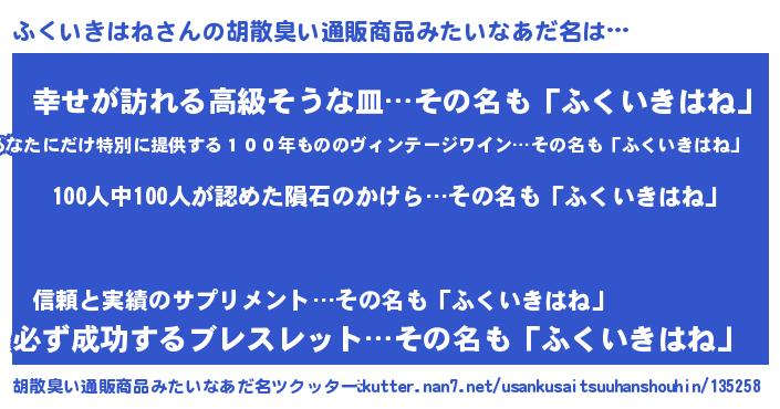 | 欧米人風あだ名 | 『ダニエルふくいきはね』 |