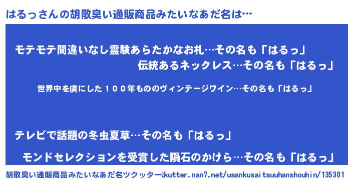 | 意味不明あだ名 | 『住所不定無職はるっ(2歳)』 |