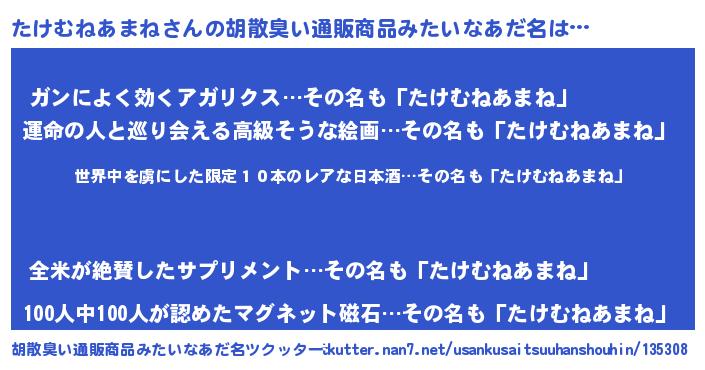 | 男性向けラノベタイトル風あだ名 | 『転生したらたけむねあまねだった件』 |