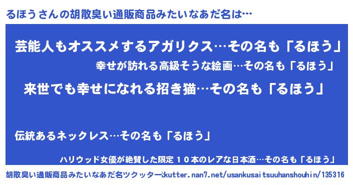 | ヘコむあだ名 | 『るほう(笑)』『レバニラ』 |