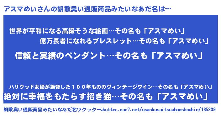 | 欧米人風あだ名 | 『アンジェラ・アスマめい』 |