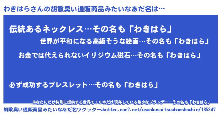 | ヒーロー風カッコイイあだ名 | 『愛の使者わきはら』『幻影騎士ワキ』 |