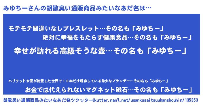 | 欧米人風あだ名 | 『みゆちークリステル』 |