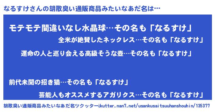 | 欧米人風あだ名 | 『なるすけクリステル』 |