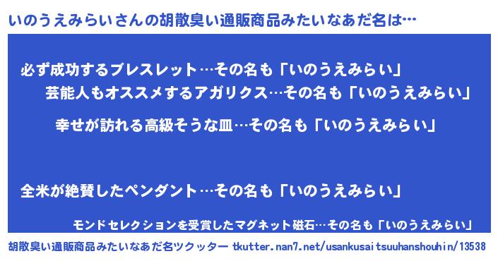 | 肩書あだ名 | 『いのうえみらい少将』 |