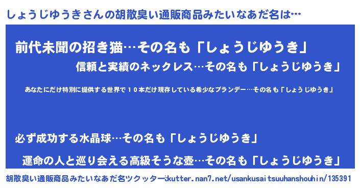 | 意味不明あだ名 | 『住所不定無職しょうじゆうき(77歳)』 |