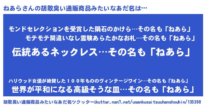 | 意味不明あだ名 | 『とにかく怪しいねあら』 |
