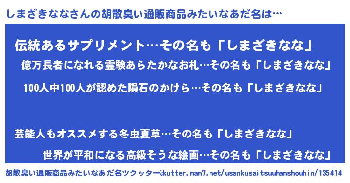 | 男性向けラノベタイトル風あだ名 | 『おまえをオタクにしてやるから、俺をしまざきななにしてくれ! 』 |