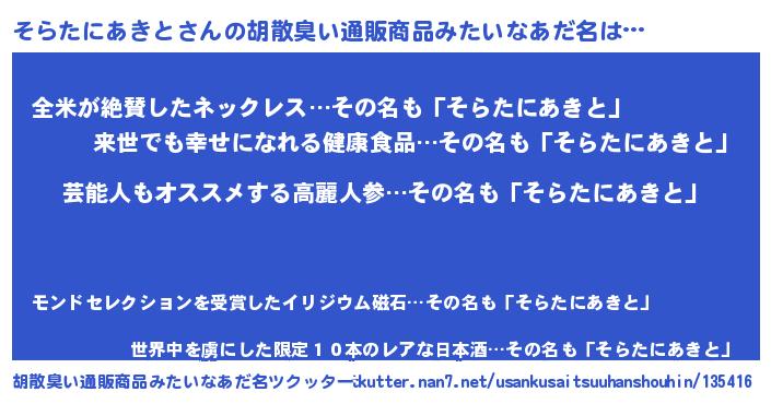 | 意味不明あだ名 | 『自称そらたにあきと』 |