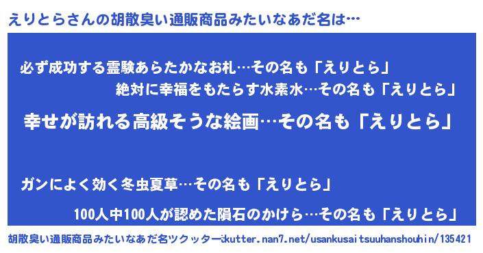 | 意味不明あだ名 | 『えりとらフォーエバー』『自称えりとら』 |