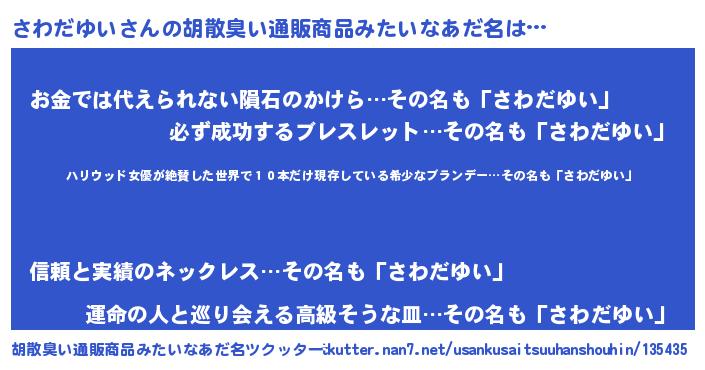 | 意味不明あだ名 | 『住所不定無職さわだゆい(89歳)』 |
