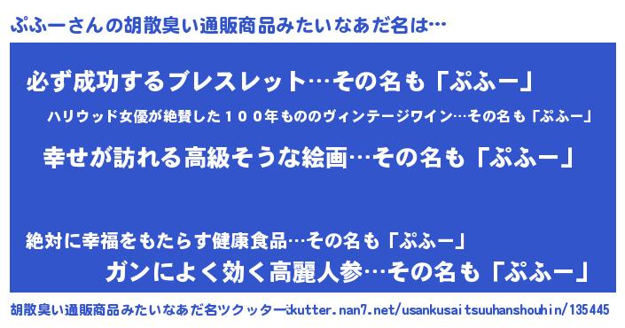 | ヘコむあだ名 | 『牛乳』『ぷふにー』『ぷふを』 |