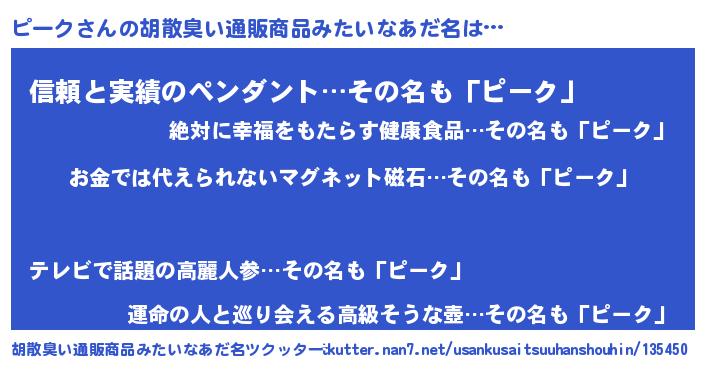 | ヒーロー風カッコイイあだ名 | 『愛の使者ピーク』『暗黒騎士ピー』 |