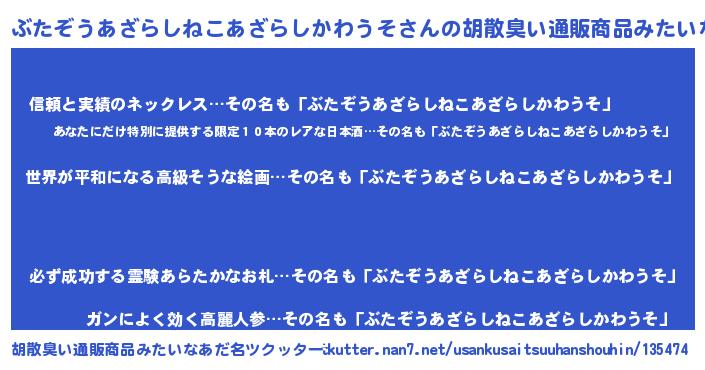 | 意味不明あだ名 | 『ぶたぞうあざらしねこあざらしかわうそフォーエバー』 |