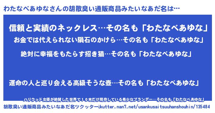 | ヘコむあだ名 | 『わたなべあゆな(笑)』『わたっ子』 |