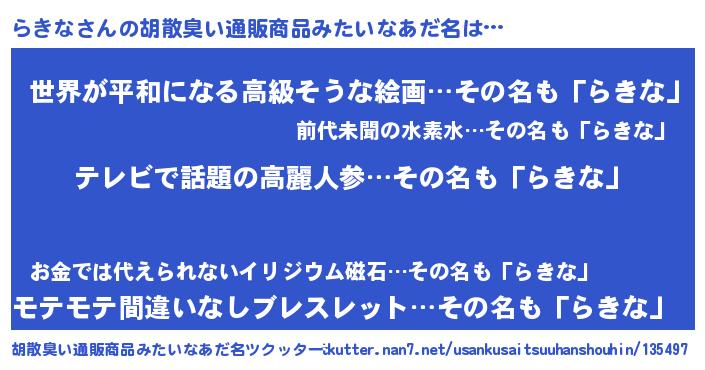| 意味不明あだ名 | 『自称らきな』『らきなフォーエバー』 |