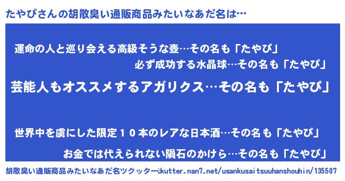 | 意味不明あだ名 | 『ヨモギ科たやぴ属』『自称たやぴ』 |