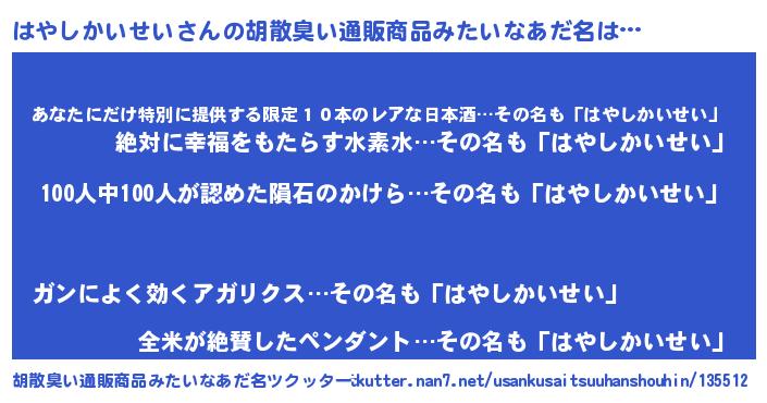 | ヘコむあだ名 | 『はやっぺ』『はやしかいせい(笑)』 |