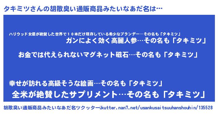 | ヒーロー風カッコイイあだ名 | 『愛の使者タキミツ』『仮面タキダー』 |