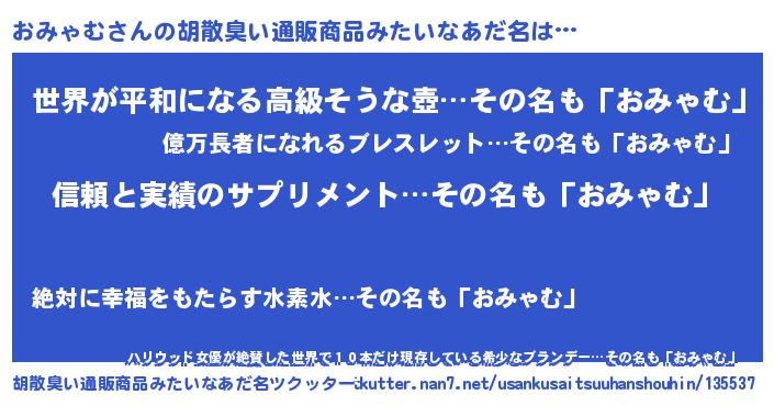 | ヘコむあだ名 | 『おみお』『なまこ酢』『おみもー』 |