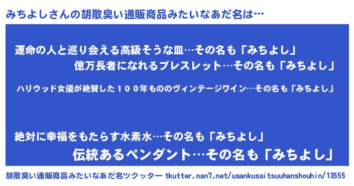 | 男性向けラノベタイトル風あだ名 | 『緋弾のミチヨシ』『ミチヨシスレイヤー』 |