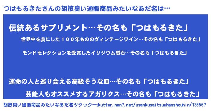 | 意味不明あだ名 | 『ヨモギ科つはもるきた属』 |