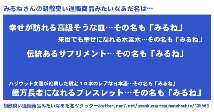 | ヘコむあだ名 | 『みるを』『つくし』『みるにー』 |