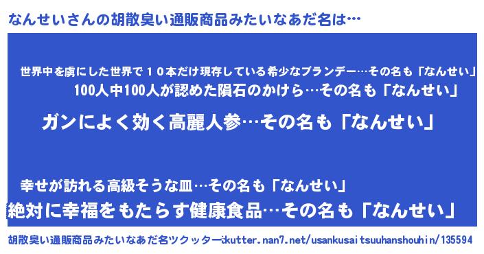 | 恥ずかしいあだ名 | 『ナンセイデラックス』『なんちん』 |