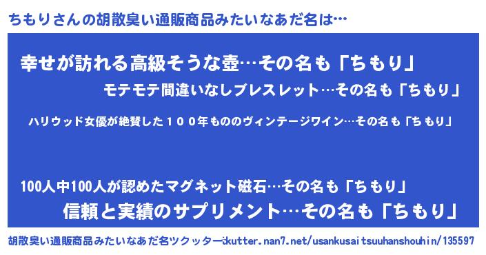 | 意味不明あだ名 | 『住所不定無職ちもり(13歳)』 |